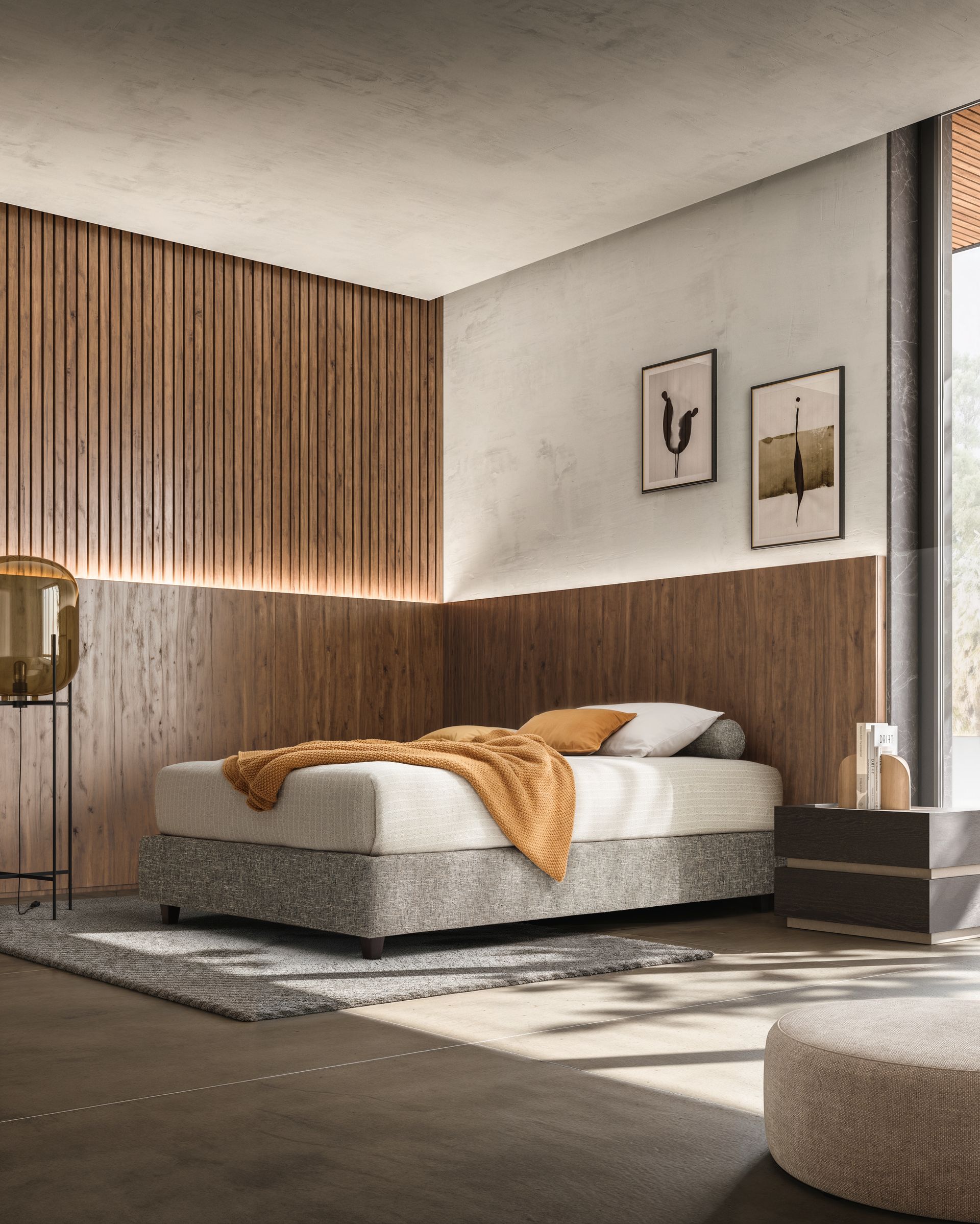 Basic Sommier è il giroletto tessile senza testiera, perfetto per la camera degli ospiti o per trasformare qualsiasi spazio in un ambiente semplice e moderno.