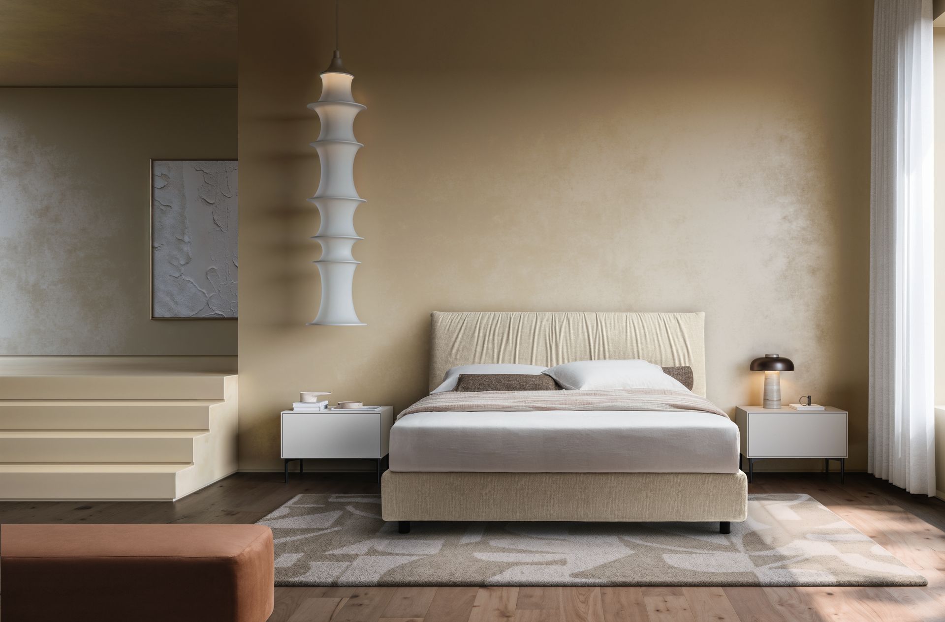 Letto dalle linee semplici e pulite, il modello Isabel è dotato di un’ampia testiera imbottita con un rivestimento dal raffinato effetto arricciato. Interamente sfoderabile, è disponibile in una vasta gamma di tessuti e colori, offrendo infinite possibilità di personalizzazione per adattarsi perfettamente al proprio stile e ambiente.