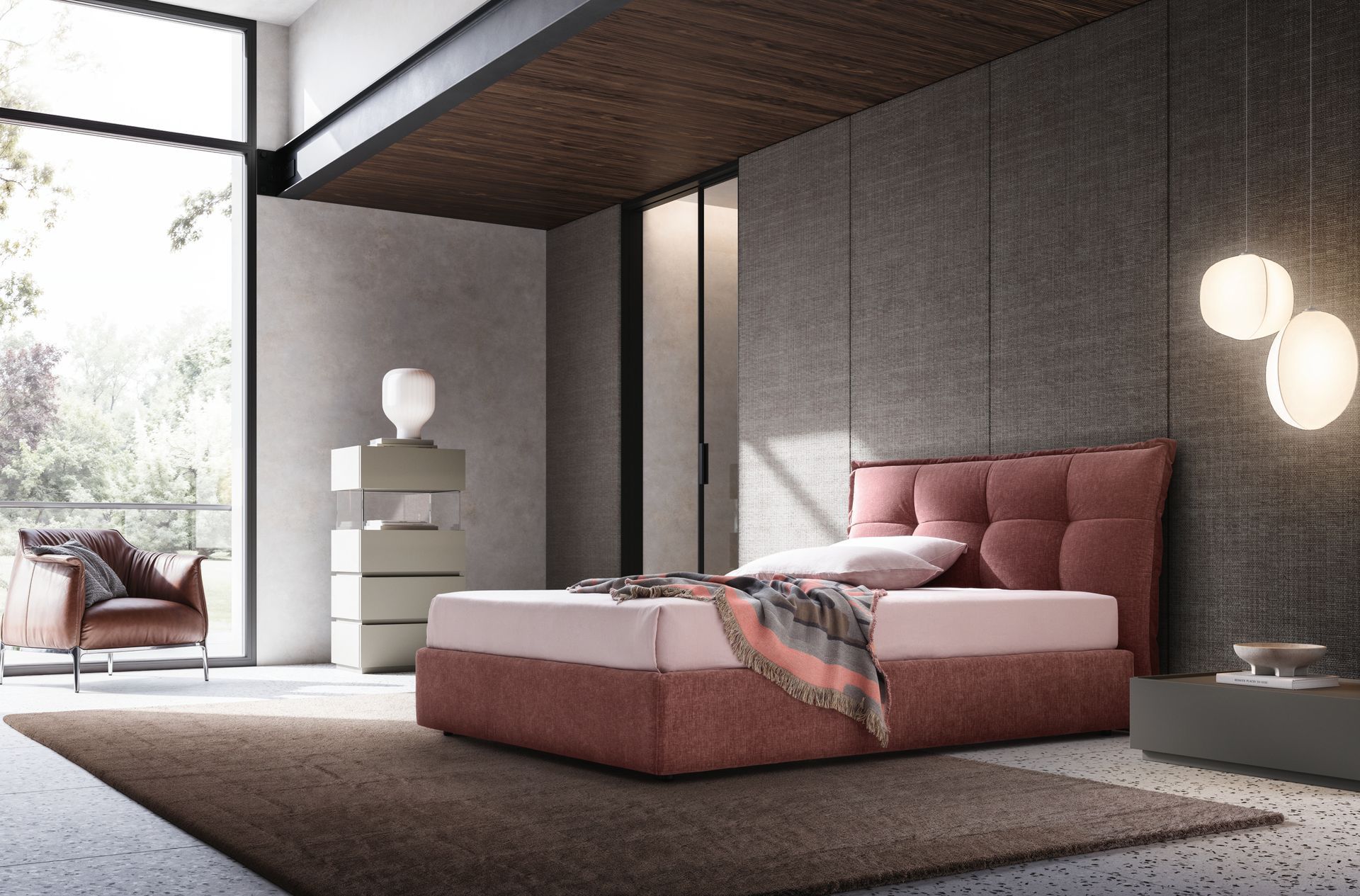 Linee pulite unite alla particolare trapuntatura a rettangoli della testiera, conferiscono al letto eleganza e modernità, rendendolo adatto sia a contesti minimalisti che ad ambienti dallo stile più elaborato.