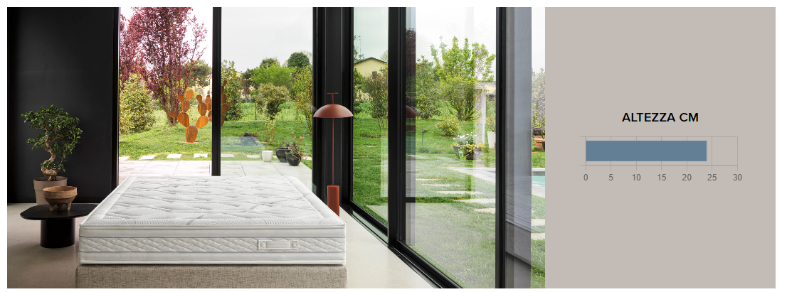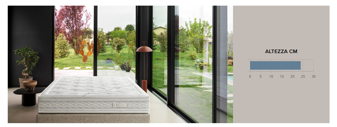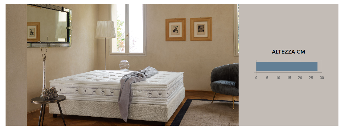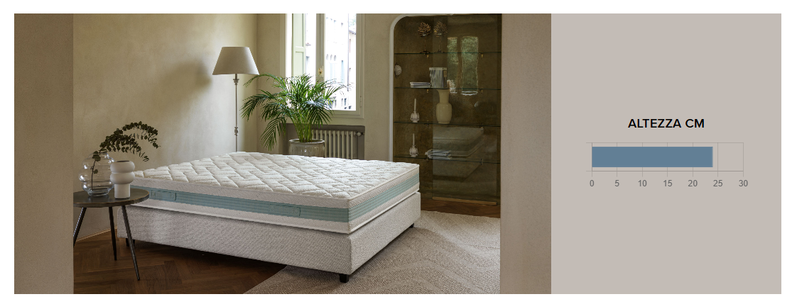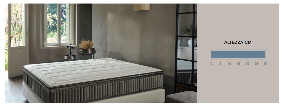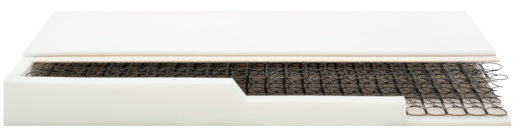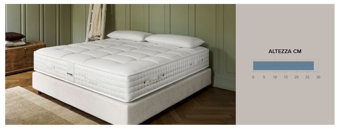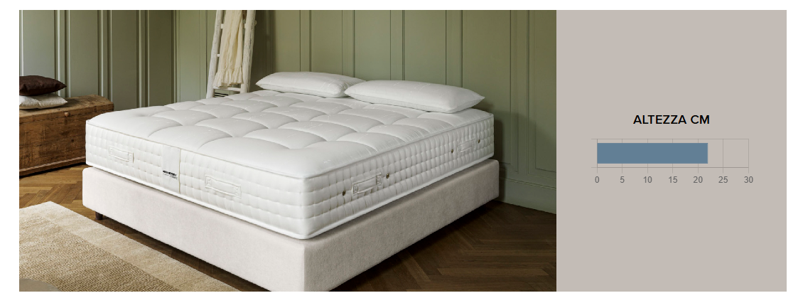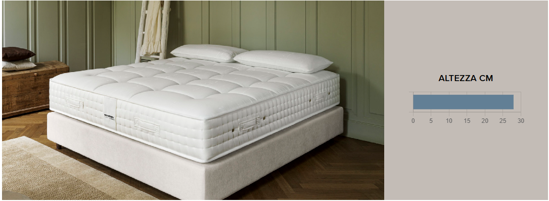La struttura interna è completata da protezioni perimetrali e imbottiture attentamente studiate per favorire un sonno prolungato e appagare il piacere estetico di un materasso ben fatto.