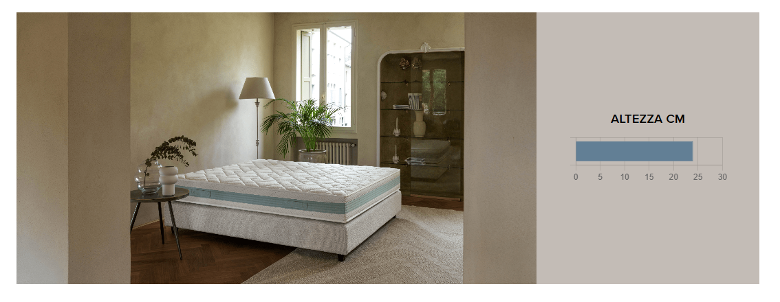 Il materasso a molle e memory assicura la ventilazione interna al prodotto e dunque una buona traspirabilità.