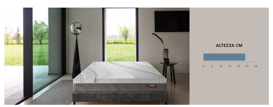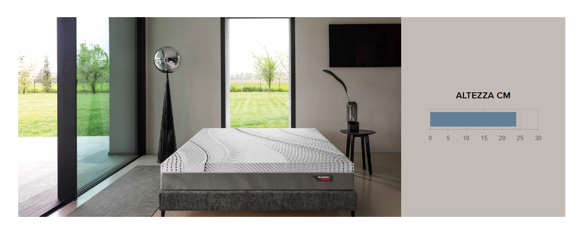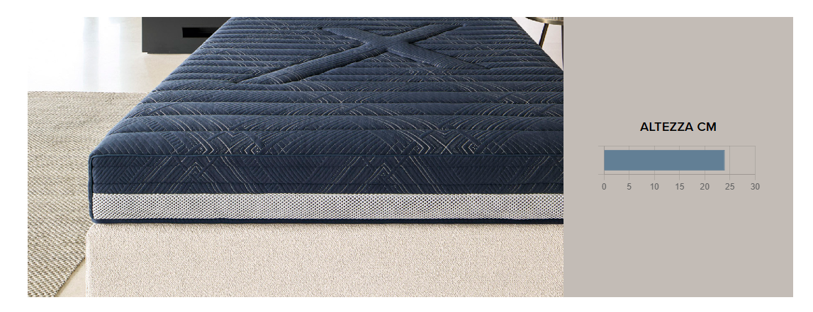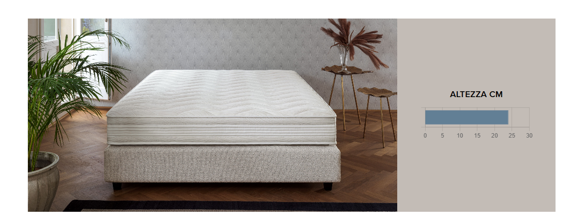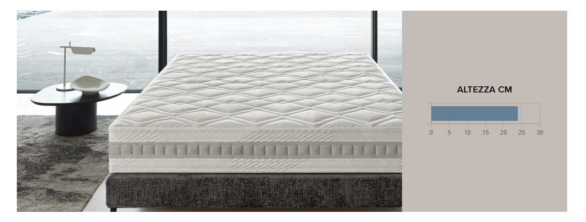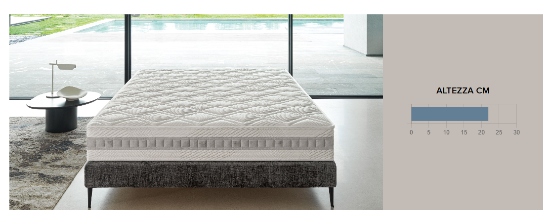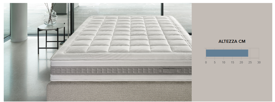 Un rivestimento con fascia trapuntata laterale completa il materasso.